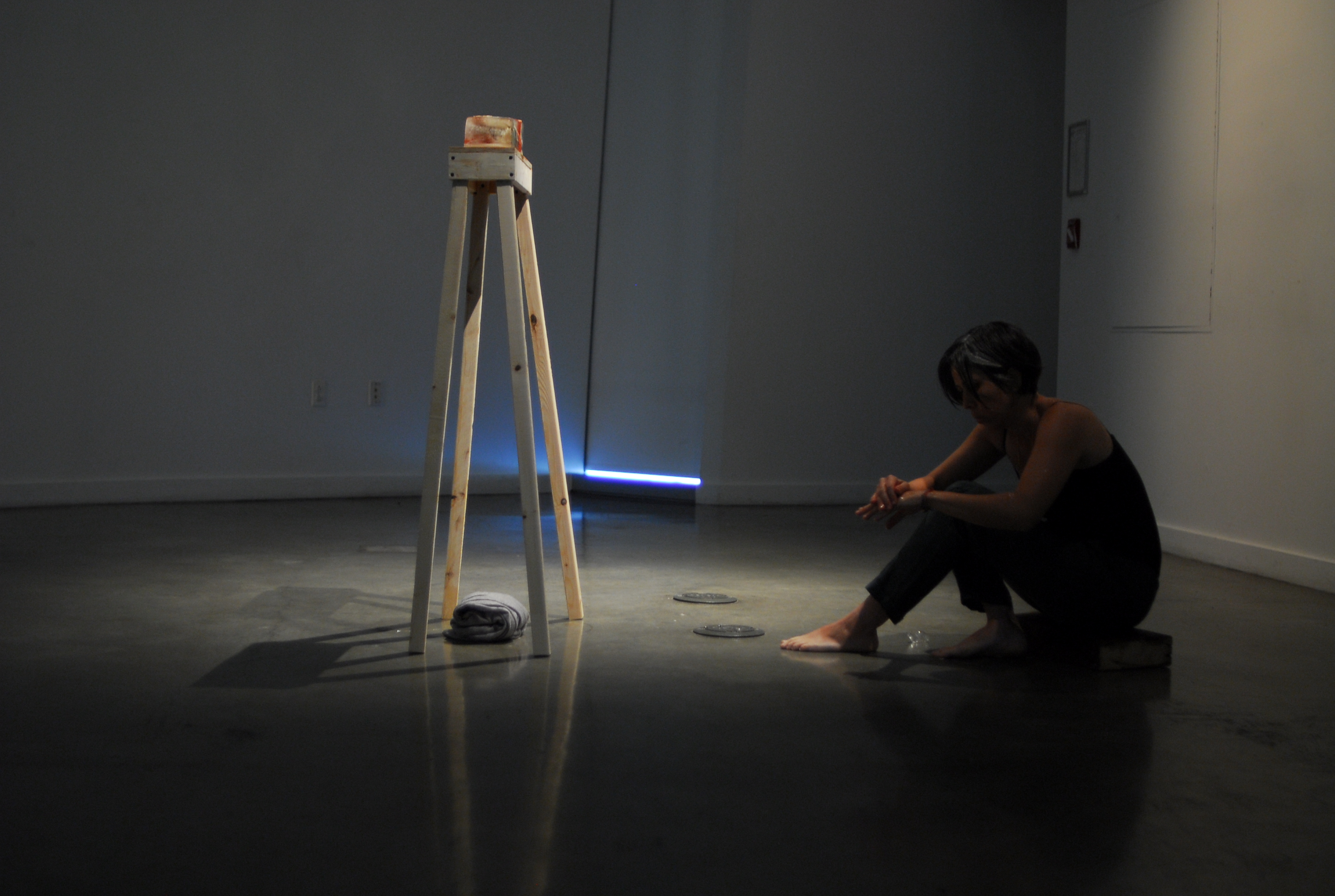 Instalación efímera que consistió en una serie de bloques de hielo, colocados sobre pedestales de madera, que en su interior atrapan objetos (libros, telas, monedas) recogidos durante varios paseos en la ciudad de Nueva York. Mi familia formó parte de la ola de emigrantes puertorriqueños que durante la década de 1950 se asentaron en la ciudad y contribuyeron a su desarrollo. Durante la acción, reflexiono sobre la contribución de mi familia a esa comunidad mientras me froto la piel con los trozos de hielo que una vez fueron contenedores de recuerdos.